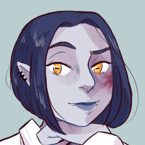 | Physical traits | Has a birthmark/angioma that looks like flames under her left eye, and her right fang is broken. | Has freckles. Her fangs are longer than usual. | |